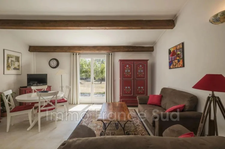 Adjacent to the 5 x 15 m swimming pool, the independent guest cottage (approx. 70 m²) includes a light-filled living room, equipped kitchen, and two en-suite bedrooms, all with direct access to the terrace and pool area.