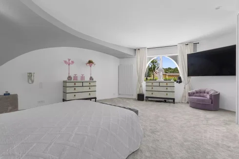 Inspired by the inviting warmth of Mediterranean style, the villa impresses with its abundant natural light and generous proportions. The spacious open-plan living areas create a welcoming atmosphere, complemented by an elegant master suite and four large bedrooms, each with its own bathroom to ensure comfort and privacy for everyone. There is also a dedicated office space, a cinema room for family evenings, a sauna for unwinding, and 60 square metres of technical rooms and outbuildings that add practicality to the refined living spaces.