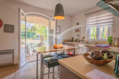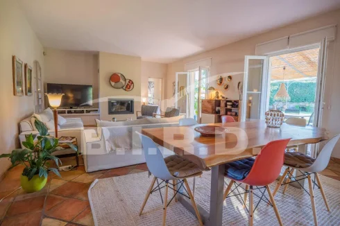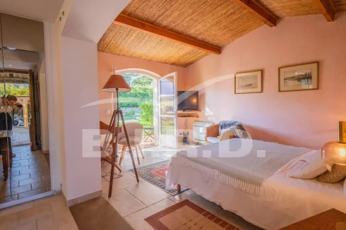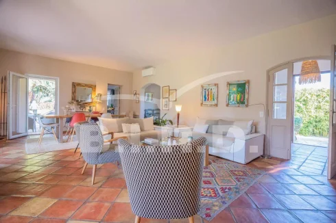 Located in the countryside halfway between the villages of Gassin and St. Tropez, discover this charming Provençal villa in perfect condition. Built on a beautiful, flat plot of 2000m², it offers a bright living room with a fireplace, an open-plan fitted kitchen with a utility room, an office area, and a master bedroom with a full bathroom and dressing room.