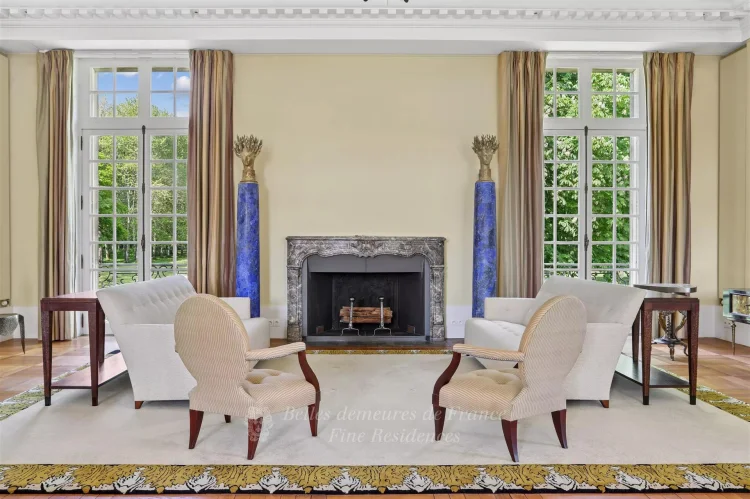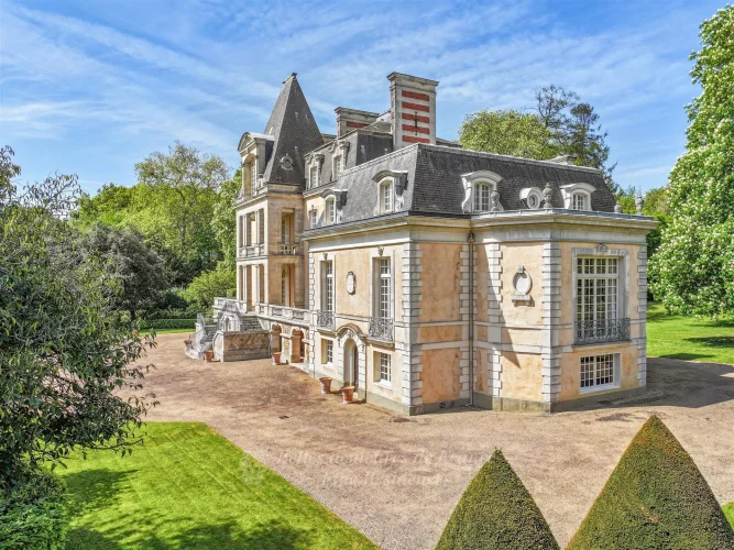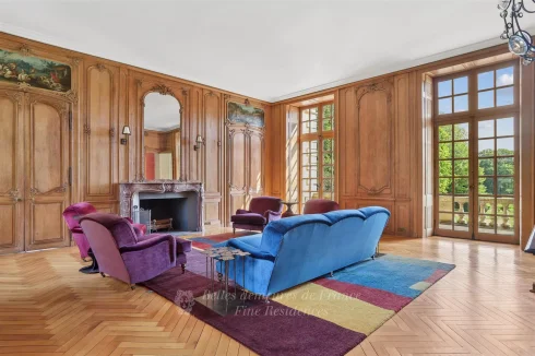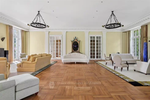 This elegant 18th century chateau remodelled in the late 19th century offers a total of about 1200 sqm of living space. It includes ground and 1st floor reception rooms (about 390 sqm in total), one boasting remarkable Louis IV-style panelling, with 6 bedrooms, two studies, a monumental library and 5 bathrooms upstairs.