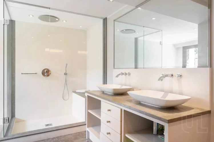 The villa has been thoughtfully designed in a modern style, with clean lines and high-quality finishes throughout. The main living area opens directly onto the pool level, where the open-plan kitchen, dining room and lounge flow seamlessly together, creating a perfect setting for entertaining or simply enjoying life by the sea.
