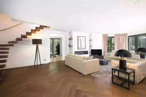 The villa is beautifully proportioned, with expansive reception rooms that flow effortlessly onto manicured gardens. Bathed in natural light, these spaces are perfectly suited for refined entertaining or quiet moments of repose, all set within a serene and verdant landscape. Every element of the design has been considered to create a seamless connection between the indoor and outdoor living environments.