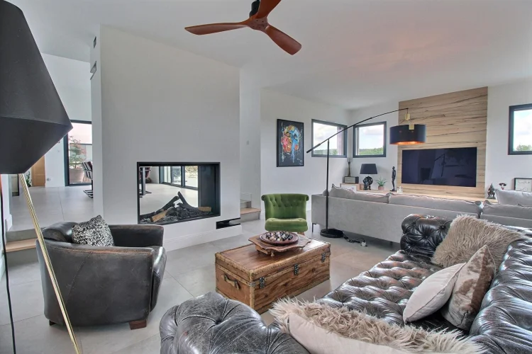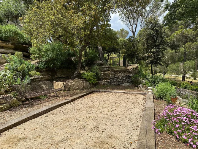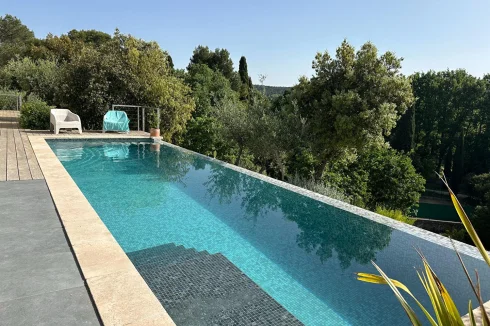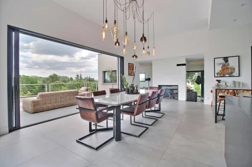 Located on the hillside in Uzès, this beautiful modern house presents a high-quality finish and stunning views. Peacefully situated at the end of a cul-de-sac, a discreet gate opens onto a paved driveway leading to the house, which is spread over two levels. The first comprises the reception area of ??approximately 85 sq.m, with a dining room/kitchen area opening through large sliding doors onto a beautiful terrace. Near this area, there is a living room with central fireplace, also backing onto a terrace with a large holm oak tree. On this same level, you will find the master suite with its dressing room and full bathroom. On the lower level, there are three additional ensuite bedrooms, two of which back onto a terrace and the pool. Near this sleeping area, there is an intimate billiards room and a beautiful wine cellar nestled into the rocks. Additional facilities at this level include a gym, a technical room, a workshop and a garage. Outside, a large terraced garden features several relaxation spaces, a pétanque, area court, a cave, a herb garden and a bread oven. This house is the ideal setting for spending good times in the company of family and friends.