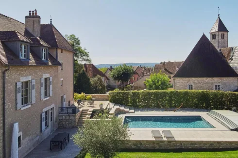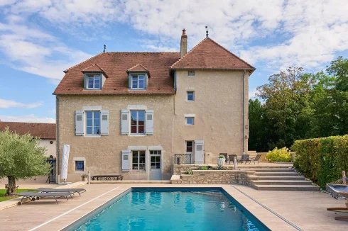 The real estate agency Arriere-Cour offers you an exceptional mansion with swimming pool, nestled in the enchanting setting of Marnay, only 30 minutes from Besançon.