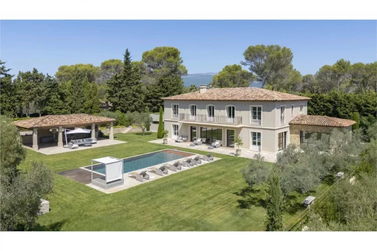 This sublime bastide offers an exceptional lifestyle in complete tranquillity. Set in the heart of a magnificent, landscaped and flat garden of 3,300 square metres, the property enjoys panoramic views over one of the most sought-after hills in Mougins. Its location provides easy access to prestigious golf courses, renowned international schools and the beautiful beaches of Cannes, making it ideal for both family living and entertaining.