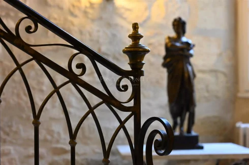 - A magnificent stone staircase, enhanced by a wrought-iron balustrade