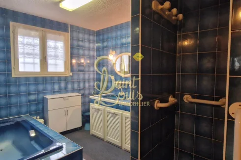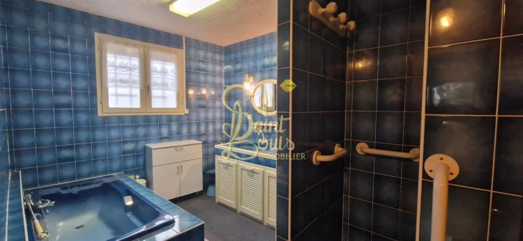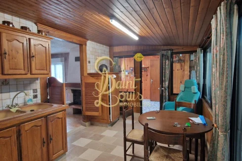 An entrance hall opening onto a large living room with kitchen area ideal for getting together with the family, a fitted and equipped kitchen, a living room with fireplace opening onto a veranda, 2 bedrooms, a toilet and a bathroom (shower and bath - two double sinks) -