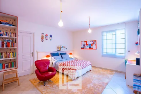 The ground floor harmoniously extends the home with a large family room – ideal for children’s play or movie nights – as well as a gym/office space, laundry room and a generous garage. An independent studio completes the property, perfect for welcoming guests or accommodating staff in total privacy.