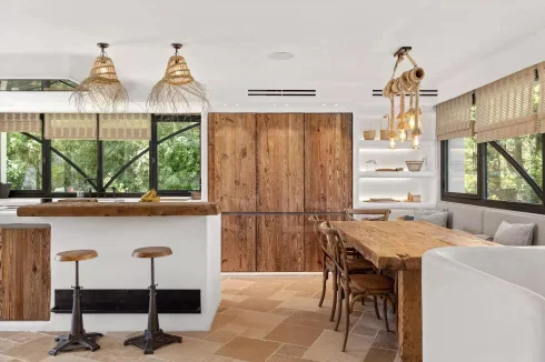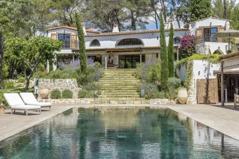 The 400 sq.m villa has just been completely renovated creating a warm and typically Mediterranean spirit with white walls treated with natural pigments, stone floors and woodwork and parquet floors with a raw and natural appearance. It comprises a bright reception room, open plan kitchen, a wine cellar, 5 bedrooms including a master suite with office and dressing room and a beautiful spa area with gym, sauna and hammam. Other features include air conditioning, home automation system, alarm and video security.