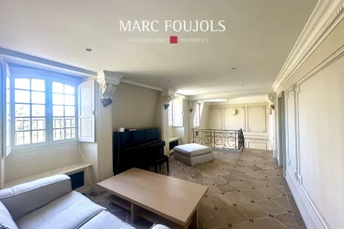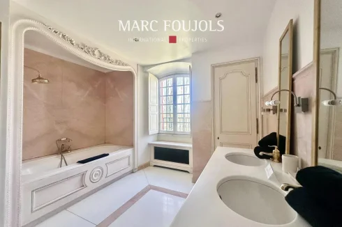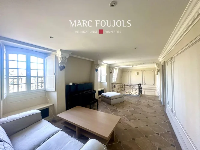 Large cathedral-framed living room with monumental staircase, air-conditioned master suite with bathroom, shower room, two dressing rooms and two toilets, plus three further bedrooms with dressing rooms and en suite bathrooms.