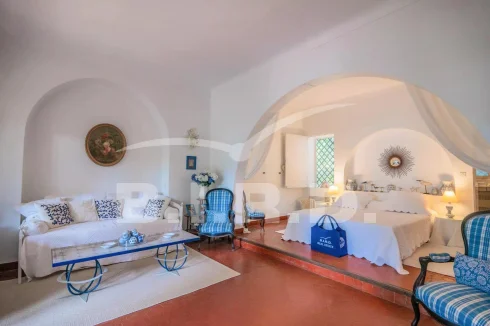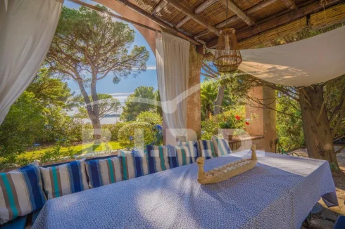Outside: a stone cloister, a large terrace, a peaceful garden and a secluded swimming pool, all facing the sea and the Gulf of Saint-Tropez.