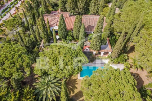 Overlooking the Mediterranean, this elegant 1930s villa is a veritable jewel steeped in history, nestled in a verdant setting of century-old cypresses and umbrella pines.