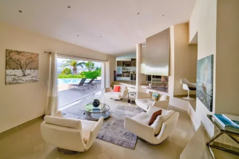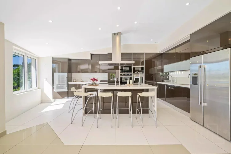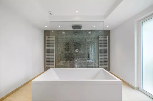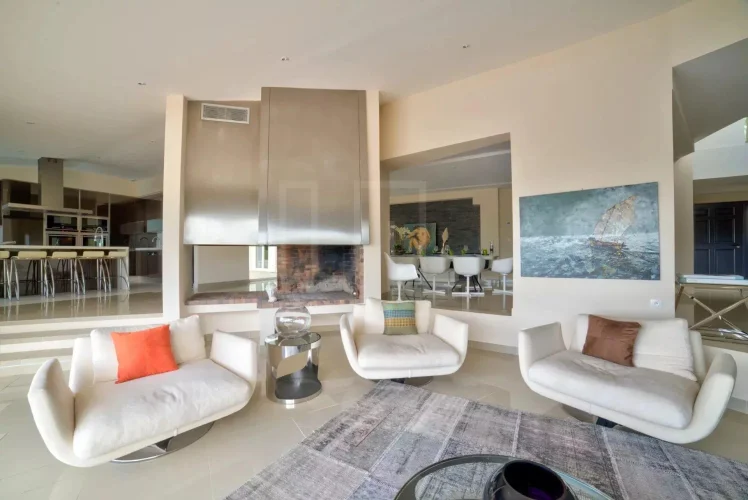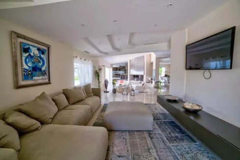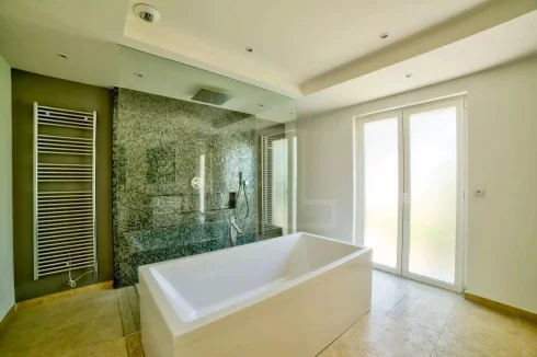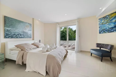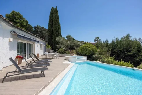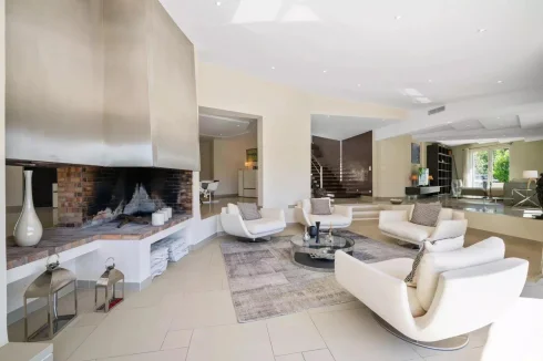 The 620 sq.m contemporary property has been entirely renovated, comprising a large bright living and dining room, kitchen, 7 bedrooms and 7 bathrooms, including a master suite with a large bathroom and 2 dressing rooms. Outside is the garden with terrace, swimming pool and jacuzzi.