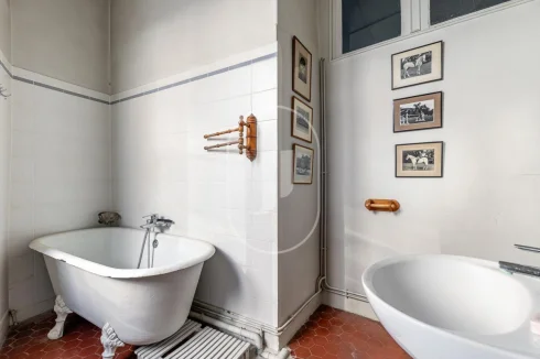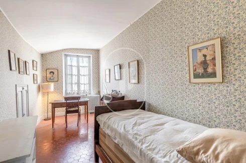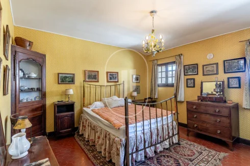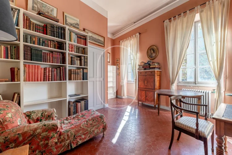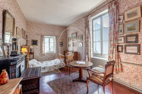 Upstairs, six bedrooms some with open views over the village are distributed alongside two separate bathrooms, a study and a library, in a soft and character-filled ambiance.