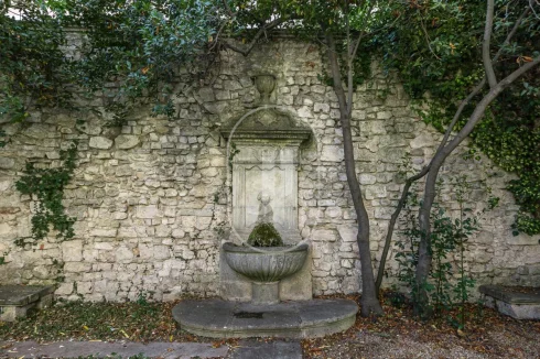 A secure garden adorned with a stone fountain evokes the timeless charm of Provence and echoes the heritage of the village's many fountains.