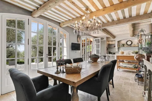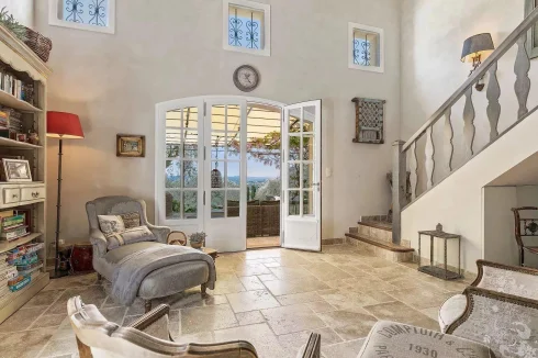 In the peaceful hills of the Cannes backcountry, this quintessential Provençal bastide enjoys a commanding position, bathed in sunlight thanks to its ideal south-west orientation. Carefully renovated with authentic materials, the villa perfectly blends traditional charm with modern comfort, creating a warm and inviting atmosphere throughout.
