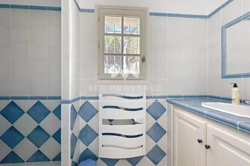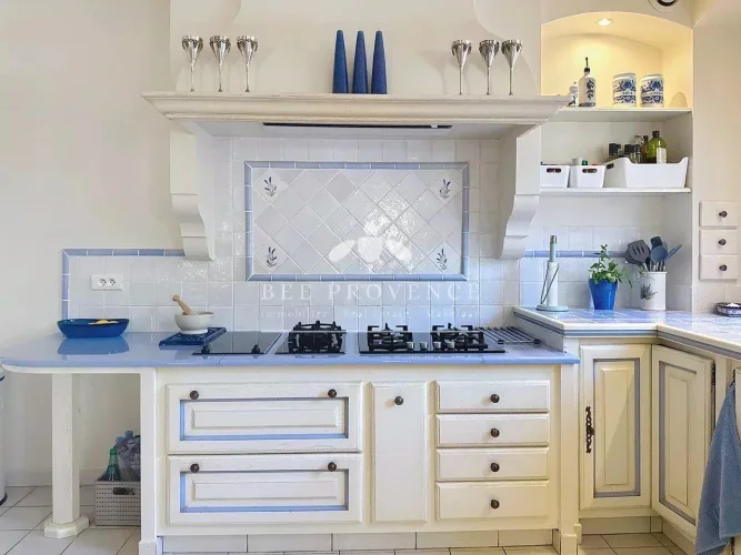 The outdoor space exudes the Provençal lifestyle: a cozy outdoor kitchen (with shower and toilet), a beautifully landscaped garden with mature plants, inviting terraces in various places around the house, and a large swimming pool. Here you can enjoy the long summer days, with lunch in the outdoor kitchen and a game of pétanque in the evening sun.