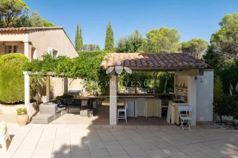 Sole Agent - Located at the end of a quiet cul-de-sac in the green and popular residential neighbourhood of Valescure in Saint-Raphaël, you will find this exceptional Provençal villa. With a living area of approximately 275 m² and a generous plot of 1,850 m², the villa offers space, tranquility and privacy as well as a magnificent view of the Golf d`Esterel.