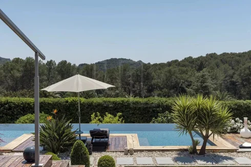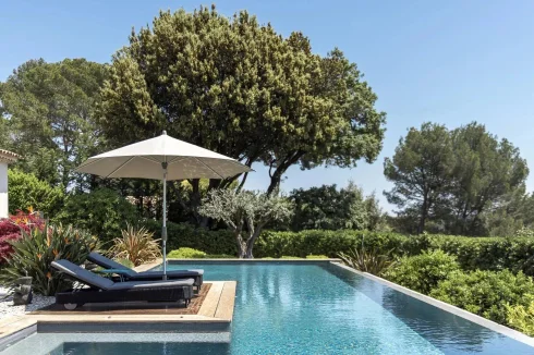 Nestled on the edge of the lush 'green lung' of Mougins, the serene forest of La Valmasque, this exquisite single-storey villa is set within a prestigious, fully-secured domain, offering 24/7 surveillance for complete peace of mind. This recently renovated property presents panoramic views of the surrounding hills, creating a truly tranquil haven where one can enjoy the utmost privacy and natural beauty.