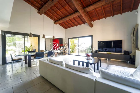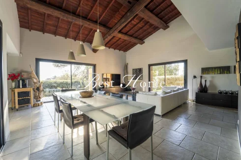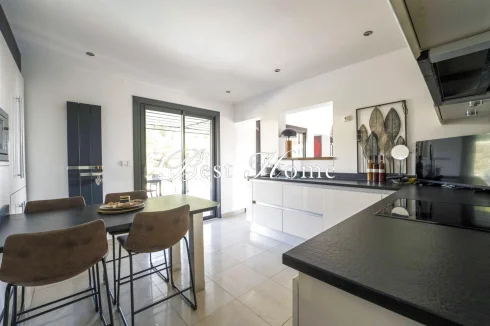 Best Home presents to you on the heights of the hills of Nîmes the sale of a luxury house/villa with view and swimming pool. This magnificent type 5 villa of more than 200 m2 of living space benefits from a breathtaking view of the South of Nîmes. It offers very beautiful volumes with a 45 m2 living room with cathedral ceiling, a fully equipped and fitted semi-open kitchen functional with maximum storage. The living rooms open with large bay windows onto terraces with various exposures, to take full advantage of the sunshine throughout the day. You will also benefit, on the ground floor, from a large office workshop of 51 m2 and high ceilings (possibility of creating additional surface area upstairs) practical for setting up an activity or other (gym, music room, etc.). .) Next, a pleasant master suite with bathroom and dressing room, a bedroom with its own water point and shower, a separate toilet. Upstairs, with a custom wrought iron staircase, you will discover a hallway with office space benefiting from a terrace, a bedroom with bathroom, all with a beautiful view of the surrounding pine forest. Wine cellar. For the summer season, an infinity pool with a beautiful open view completes a superb landscaped garden, fully enclosed and planted with trees. A summer kitchen in front of a bowling alley gives the opportunity to enjoy friendly moments. This little corner of paradise awaits you... To discover without delay. to visit Annabelle Lafon: tel or . Email: contacest- Your Best Home agency welcomes you at 6 place Questel in Nîmes. All our photos on our site - Information on the risks to which this property is exposed is available on the Géorisks website: