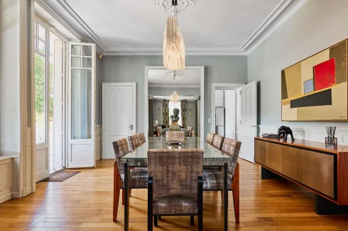 Both interiors and exteriors have been completely revisited in 2017, for your greatest pleasure. The result awaits you on rue St Martin, on more than 54 ares of enclosed park and 330m² of exceptional housing, with outbuildings and swimming pool. Superb, impeccable, and resolutely neoclassical in style, with a touch of Art Deco.