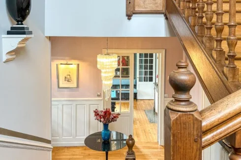 On the ground floor of the house, various living rooms are harmoniously articulated on 170m² around a central hall, punctuated by its period earthenware and flanked by its superb 19th century pure oak staircase which leads to the upper floors.