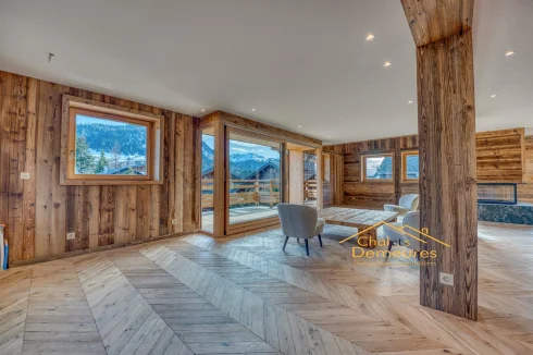 At the foot of the village and close to all amenities, this magnificent renovation (currently being finished) is in the purest authentic Savoyard style, with luxurious modern features and vast volumes over 450 m2 of living space, benefiting from panoramic views of the mountains. A kitchen opening onto a double living room with fireplace, 7 en suite bedrooms including a master bedroom on the top floor, lift to all floors, swimming pool, spa and garage complete this exceptional property. File on request. Yannick Bardel Chalets et Demeures