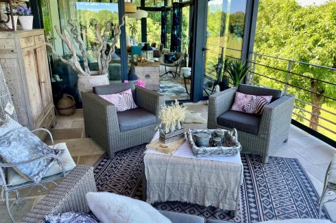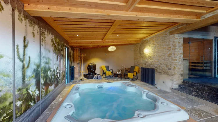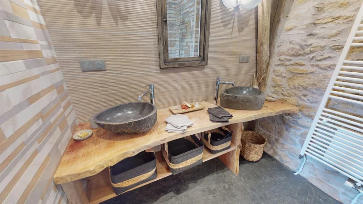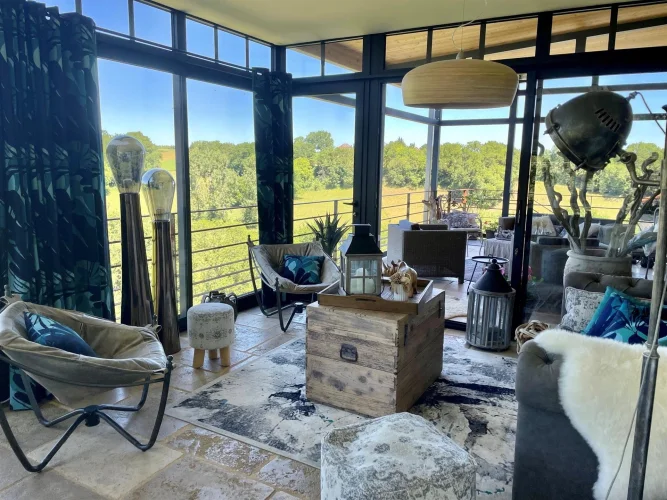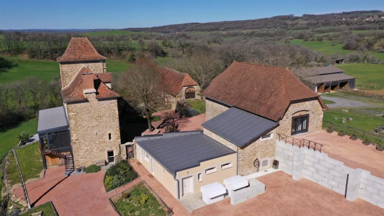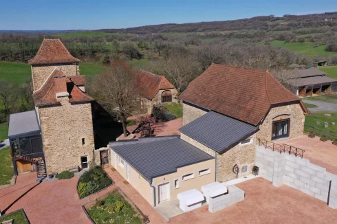 Exceptional estate with spa, near Figeac (south side)? Approximately 19 hectares? 900 m2 of living space Discover this splendid character estate, set on nearly 19 hectares, offering 360o panoramic views of the surrounding countryside. The property consists of an elegant main manor house, high-end guest rooms, a wellness area with a spa, agricultural and equestrian outbuildings, and a heated swimming pool. The property enjoys absolute tranquility and a preserved natural environment. Main house? Manor house (approximately 342 m2 of living space) Renovated with exceptional care, combining authenticity and comfortable modernity, the main house offers: A large, fully equipped kitchen, worthy of a professional kitchen A bright summer lounge with bay windows opening onto the exterior Dining room with stove, exposed beams and monumental stone fireplace Occitan stone floors, beautiful central staircase and elegant doors preserved Large master suite with bathroom, shower and bathtub, dressing room Three other large bedrooms (one in the dovecote) with shower rooms Garden level: cellars, wine cellar, workshop, technical room, kitchen and garden access Two single-story rooms (approximately 50 m2) which can be used as an office or accommodation for friends/family Annexes Heated swimming pool with heat pump, tree-lined beach and storage for garden furniture Outbuildings? Guest rooms and wellness area (366 m2 of living space) Shop and large dining room with kitchen Exceptional wellness area: sauna, hammam, Nordic shower, jacuzzi and sports machines Four remarkable guest rooms (one of which is accessible to people with reduced mobility), all with en-suite bathrooms, on the same level, soundproofed and with panoramic views Barn with convertible space Agricultural and equestrian outbuildings Fully equipped horse boxes 18.69 ha of land with agricultural outbuildings, chicken coop, sheds, shelters, hut Paddocks, 40 x 20 m arena, pétanque court, well and rainwater collection Fenced and irrigated land Possibility of acquiring furniture and agricultural equipment High-quality renovation with ecological materials Assets Ultra-modern functional and technical spaces Stunning views and absolute tranquility Proximity to amenities: 10 minutes, Figeac 15 minutes Excellent Dpe This property combines authentic charm, generous space, modern comfort, and exceptional quality of life. A unique place where every detail has been designed to combine aesthetics, functionality, and well-being.