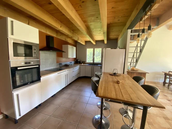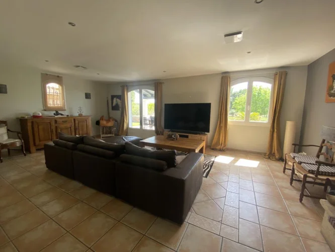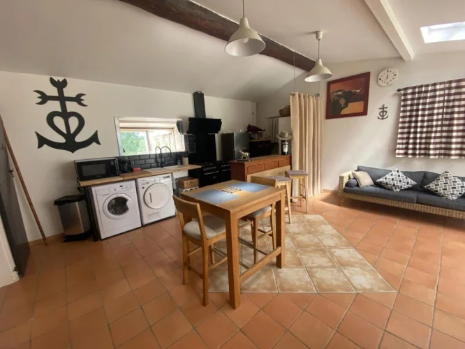 Keller Williams Regard offers you this farmhouse composed of 2 houses on 2 hectares + hangar in absolute calm fully fenced in Fourques Ideal boarding / horse education with its facilities, paddocks and tack room The first house totals about 140 m² and is composed of a large living room with open fitted kitchen opening onto a large terrace. On the night side, you will find a shower room, a separate toilet and 3 beautiful bedrooms of about 14m² each with storage. For your comfort, you can enjoy reversible ducted air conditioning as well as a fireplace with insert and a summer kitchen. The second house of about 80 m² consists of a living room with open fitted kitchen of about 40m², 2 bedrooms, 1 dressing room, a storage room and a bathroom with toilet + A mezzanine of about 35m² with velux that can be used as a playroom for the children or an attic / storage space. This house is equipped with electric shutters. Access to the property is secured by the presence of two videophones (one for each house) and has a main entrance with automatic gate + a second independent entrance at the rear of the property. Technical side: Reversible ducted air conditioning, borehole, automatic watering, thermodynamic water heater, photovoltaic panels... Equestrian side: Fenced paddocks, simple facilities for horse training, a shed, open of 150 m², possibility of transforming into a box, agricultural outbuildings, tack room, pensing area, fenced parks, watering, shelters.. Come and discover this haven of peace that can be adapted to your projects! Contact us for a visit!