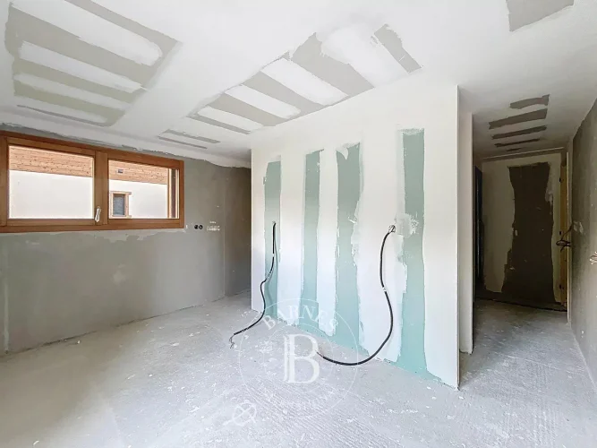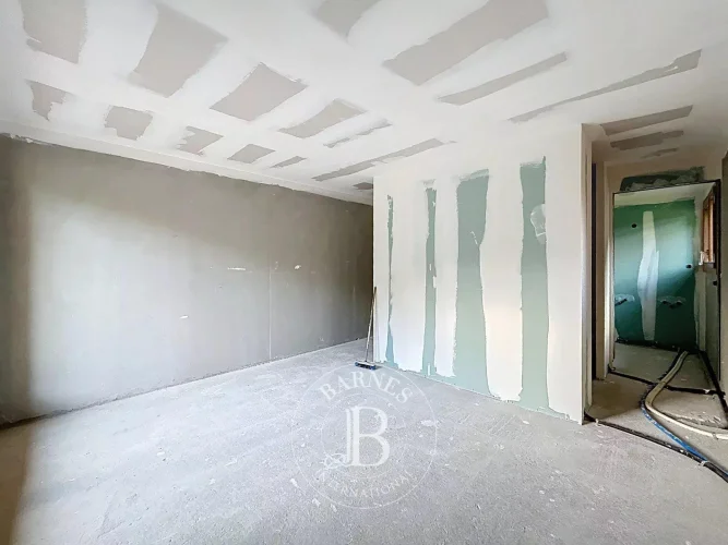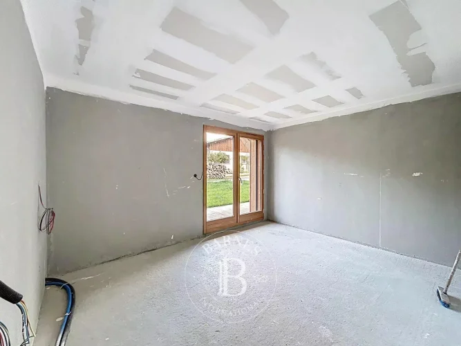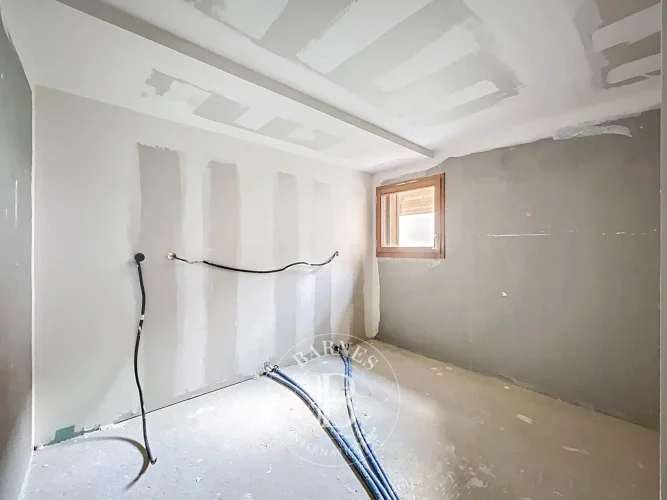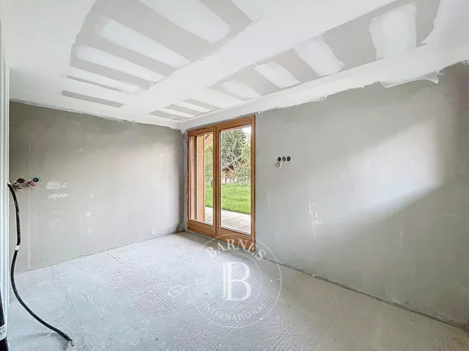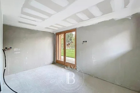 On the garden level: two large en-suite bedrooms — one with a dressing room, shower room with double basin and Wc, the other with fitted wardrobes, shower room and separate Wc. Both bedrooms open onto a terrace and the garden. This level also includes a double bedroom, a bunk bedroom, a shower room, a separate Wc, a utility room, and ample storage.