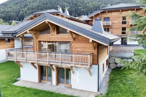 The chalet forms part of a small condominium with a neighbouring chalet and a small residence set behind.