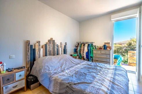 In a pretty secure domain with swimming pool close to the beach and shops, beautiful south-facing villa enjoying a clear view. Living room, fitted kitchen, 2 bedrooms opening onto terrace, bathroom, 2 toilets and garage. Possibility of swimming pool and expansion. Interesting potential!