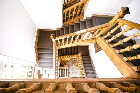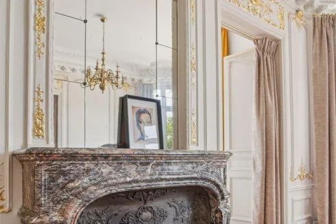 Historic elements, such as the solid oak staircase, the gold-leaf mouldings and the period parquet flooring, have been carefully restored.
