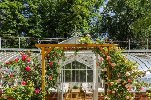 Ground floor: majestic entrance, four bright reception rooms with unobstructed views of the garden, fully equipped dining kitchen, terrace, winter garden.