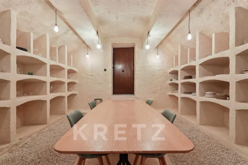 The basement of 229 m² includes five rooms, an independent kitchen, a bathroom with toilet, a wine cellar and a workshop, as well as access to the swimming pool and garden.