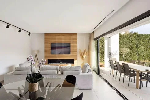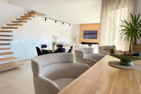 Designed for the ultimate in modern living, the property is equipped with a range of high-end features, including air-conditioning, an alarm system, an intercom, and a videophone for added security and convenience. The landscaped gardens are carefully maintained with an irrigation sprinkler system, while the electric gate and outdoor lighting complete the sense of exclusivity.