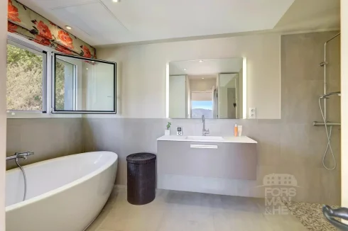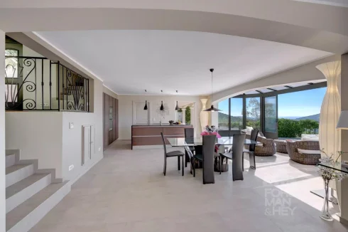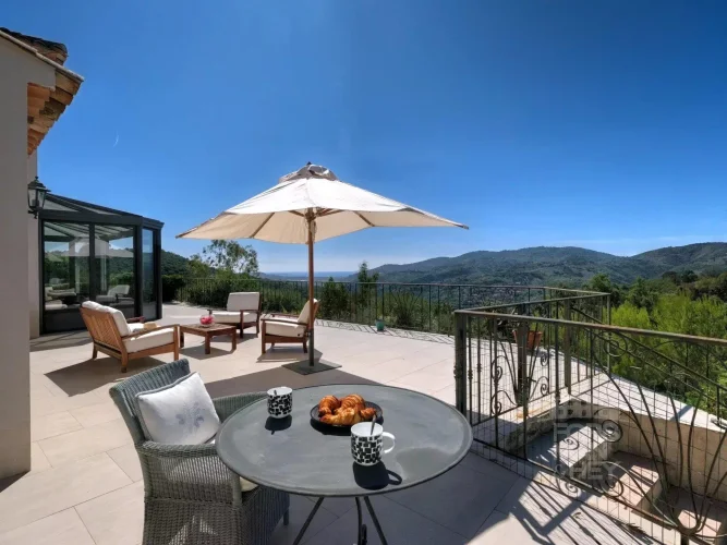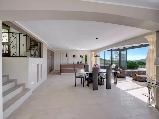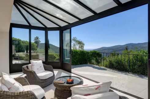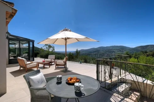 Sole Mandate: Peaceful surroundings, pure nature, and gorgeous views… These are ever increasingly luxury aspects of a property, especially if located in good distance to shops and restaurants. This modern and turn-key home is one of these rare finds. Fully airconditioned and equipped to high standards, the villa offers 4 bedrooms, including a master bedroom suite, and a very spacious living area with open kitchen. Each room takes in the sweeping views of the valley down to the Mediterranean Sea.