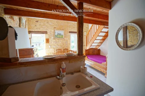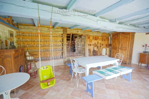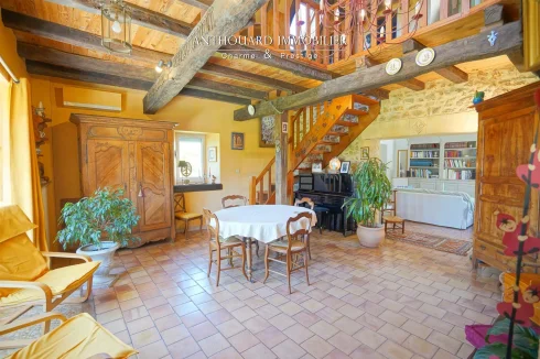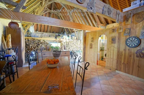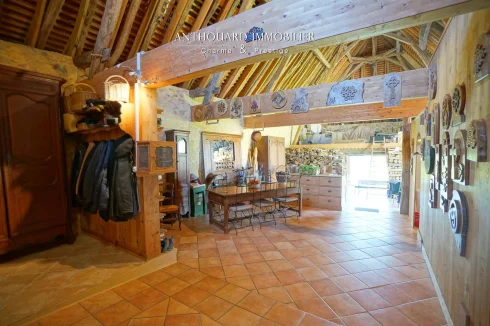Communicating barn: large living space, dining room, cloakroom, laundry room, shower room, Wc. Woodshed.