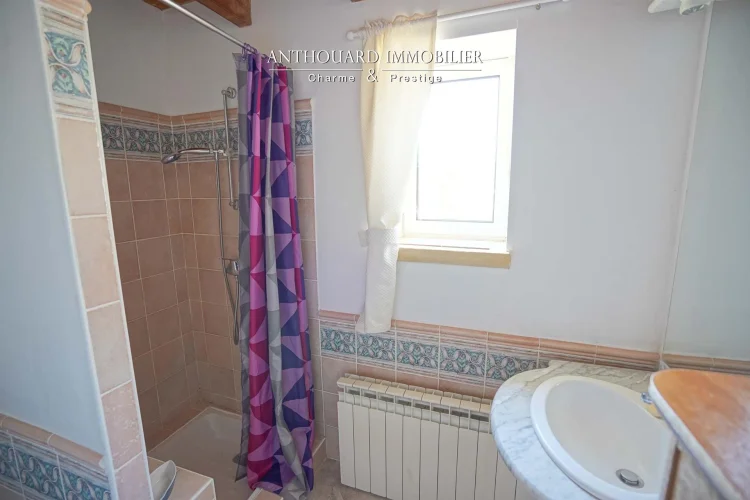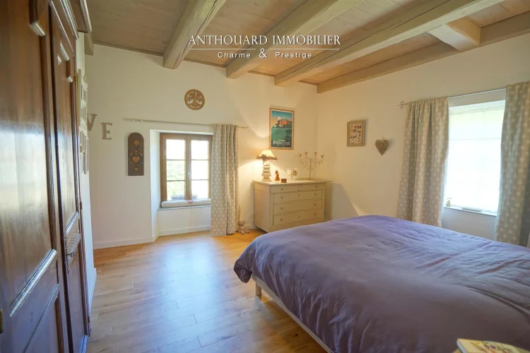 On a plot of about 1ha enclosed, landscaped, wooded and offering a very nice view of the countryside. Orchard.
