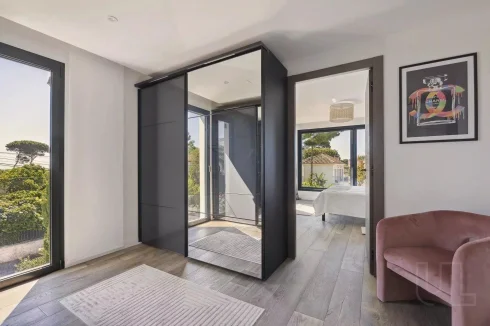 The villa comprises four generous en-suite bedrooms, including a luxurious master suite that enjoys sea views and complete privacy. The bedrooms on the upper level benefit from partial sea views, while the rooftop terrace provides a spectacular panoramic outlook over the Bay of Garoupe, perfect for relaxing or entertaining against a stunning Mediterranean backdrop.