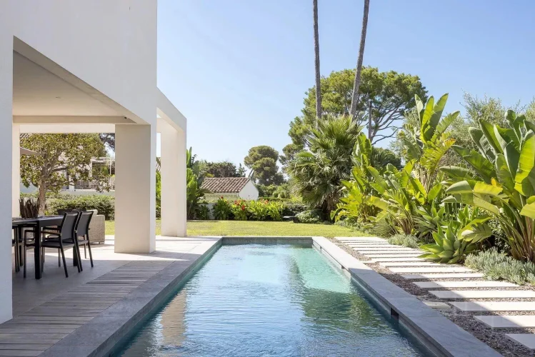 Situated in the prestigious and tranquil Garoupe area of Cap d'Antibes, this contemporary villa offers an exceptional standard of living just a short stroll from the sea. Set on a beautifully landscaped plot of 1,000 square metres with a private swimming pool, the property spans approximately 314 square metres over two main levels, with the addition of a spacious basement that can be fully customised to suit your lifestyle.
