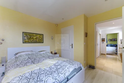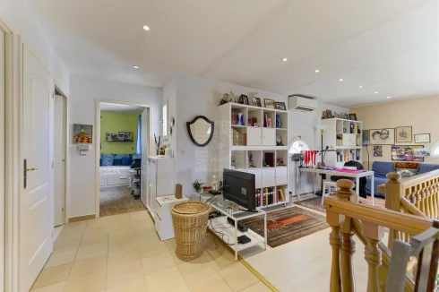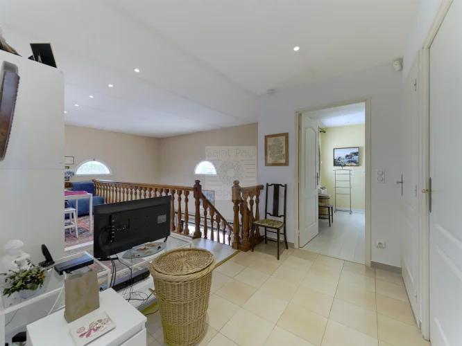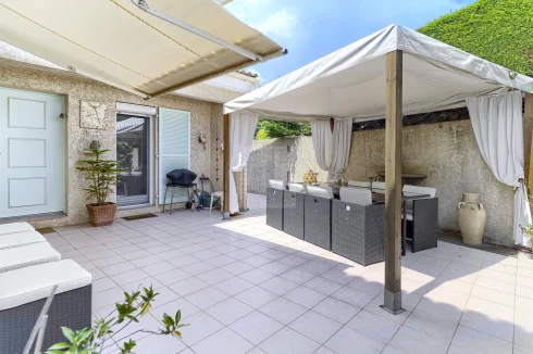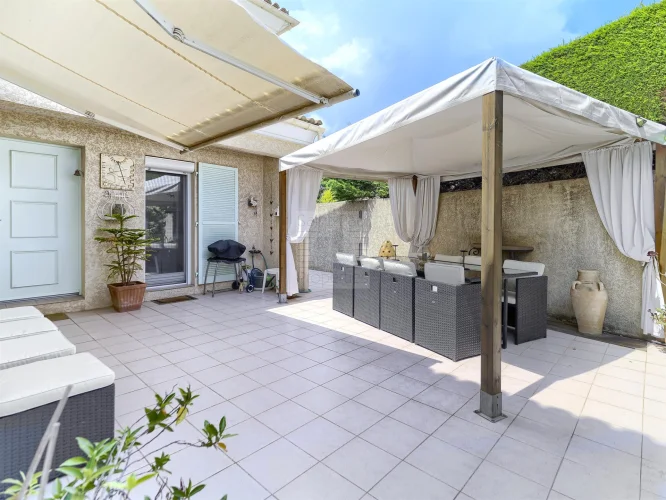 Large 4/5-room patio villa of 121m2, located in the heights of Vaugrenier, this villa will seduce you with its quiet location in the hamlet of Ambassades within the magnificent Hauts de Vaugrenier estate. On the ground floor, the villa consists of a large, bright living room opening onto each of the two terraces. A dining room, as well as a mezzanine overlooking the living room, currently an office, could be used as a third bedroom. A fitted kitchen opening onto the entrance terrace, with laundry room, a separate toilet and fitted cupboard. Upstairs we have two bedrooms, including a master bedroom with bathroom and toilet, a bedroom with shower room and separate toilet. Two large terraces with pergola and gazebo and garden sheds, allow you to have additional living space all year round. A garage and a parking space complete this property. A communal swimming pool in the hamlet, the membership fee for which is included in the monthly charges. A right of access to the club is also part of the package, in order to be able to benefit from reduced rates on annual subscriptions to Olympic swimming pool, tennis, and padel.