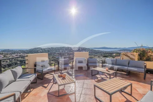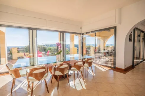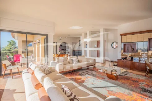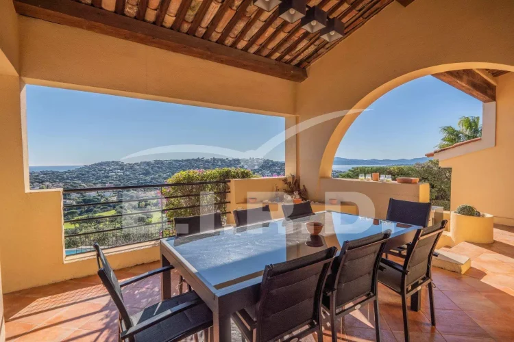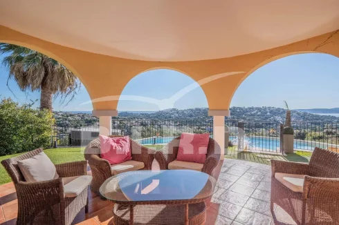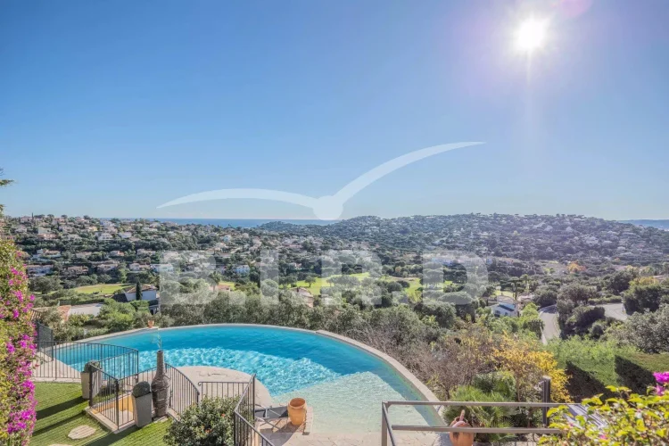In the prestigious domain of the Sainte-Maxime golf course, elegant villa built in a dominant position facing the hills and the Gulf of Saint-Tropez.