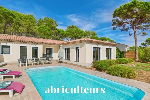 Located in a private residential domain in Bagnols-en-Forêt, this architect-designed villa, built in 2020, offers generous volumes, elegant lines, and exceptional construction quality.