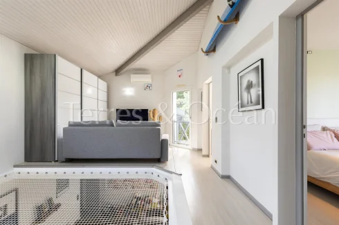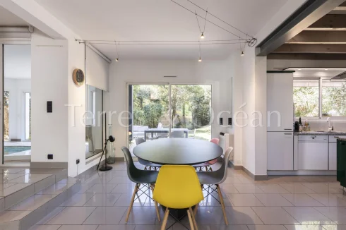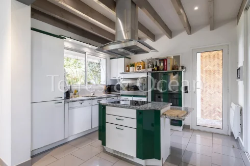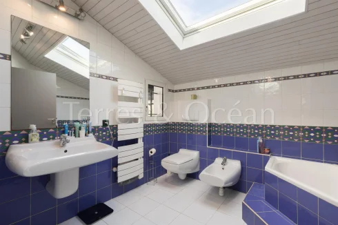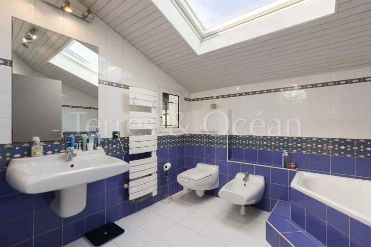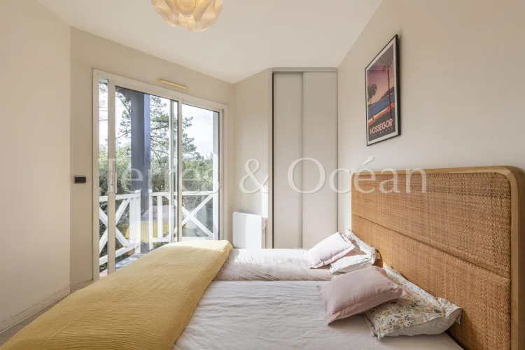 Privileged location, in absolute calm in a cul-de-sac in a dominant position, just a few minutes from the city center of Hossegor and the port of Capbreton. Nestled in the heart of the pine forest, the villa 'Anabiose', approximately 157 m2, seduces with its brightness and its numerous openings offering a breathtaking view of the forest. It is composed as follows, on the ground floor an entrance with cupboards, a dining area with open kitchen, a living room with designer insert, an indoor heated spa equipped with a counter-current swimming system, a master suite with dressing room and shower room, separate Wc, laundry room. Upstairs, a mezzanine with office space, Tv lounge and suspended net, two bedrooms with storage, one with balcony and the other with a covered terrace, a large bathroom with Wc. Outside, a large south-facing terrace with awning opens onto a wooded garden, without any vis-à-vis. A garage with electric door and a carport complete this rare property. Technical information: information on the risks to which this property is exposed is available on the Géorisques website: Dpe in progress. Offered for sale by the Terres & Ocean immobilier agency - Sales agent Ms. Mathilde Vintrou Rsac tel: