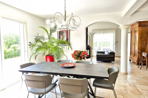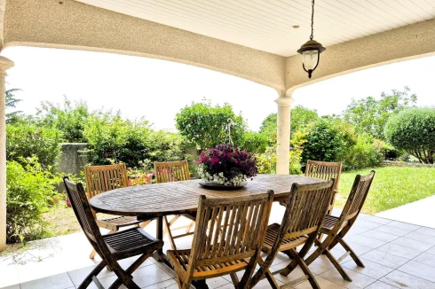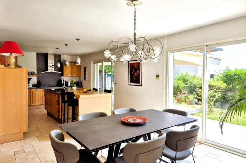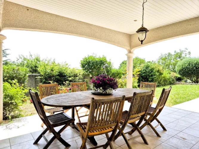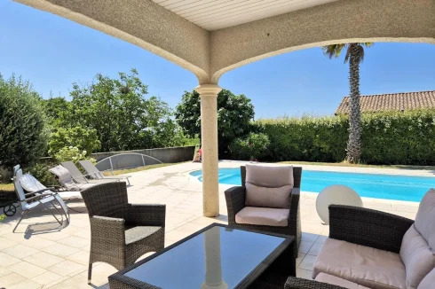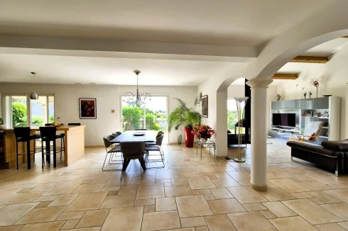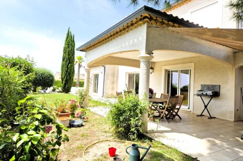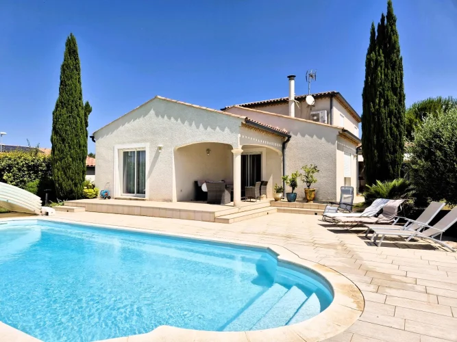Herault Home Hunter is proud to present to you Exclusively this superb villa with swimming pool nestled on the heights of the charming village of Alignan Du Vent, located just 10 minutes from Pezenas and 5 minutes from ROeUJAN, its college and its shops. This very spacious and bright villa is hidden in a cul-de-sac in the heart of an intimate subdivision and offers beautiful views of the surrounding countryside. Everything here exudes calm and serenity! Spread over almost 190m2 of living space, its beautiful front door opens onto a very spacious living room composed of a large, modern and fully equipped open kitchen, a bright dining room and a warm living room in which a beautiful suspended wood stove reigns supreme. All of this opens onto a large, partly covered terrace. On the same level, you will discover a beautiful master suite with dressing room and en-suite shower room - toilet as well as an office of more than 10m2 which could just as easily be a 5th bedroom. A separate toilet with washbasin area and storage completes the ensemble. Upstairs, a bright landing leads to 3 bedrooms, a bathroom with shower and bathtub and a separate toilet. The magic continues outside, the 1000m2 plot hosts a barbecue area with sink on the main terrace bordered by a charming garden, a more intimate covered terrace overlooking a magnificent 10M x 4M salt pool equipped with a motorized shelter, a technical room, a garage of more than 30 m2 with a mezzanine of almost equivalent surface area and a carport. As a bonus, a parking space in front of the garage, inside the plot. In Brief: 2007 villa in Excellent Condition, No Work Required, Very Good Volumes, Exceptional Brightness, Quiet Area, Good Insulation, Reversible Ducted Air Conditioning, Wood-Burning Stove, No Electrical Anomaly, Not Overlooked, Open View, Crawl Space, Covered Pool, Main Drainage and many other advantages! Agency fees of 25,000.00 euros payable by the Purchaser, not subject to notary fees, i.e. A net seller price of 560,000.00 euros. Dpe: B Et A carried out on June 5, 2025 Are you far away? A Virtual Tour is available upon request. Don't hesitate to at or by email at nadege.chevalieerault-. Information on the risks to which this property is exposed is available on the Géorisques website