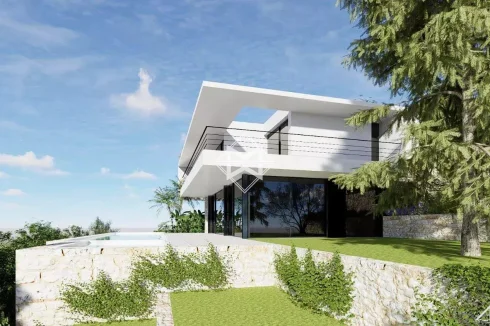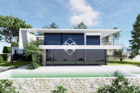 This property, covering approximately 250 m², is offered for sale with a validated and cleared building permit for the construction of a contemporary flat-roof villa of around 350 m², spread over two levels: ground floor and first floor. Additionally, there is an 84 m² basement designed to include a wellness area with a Spa, a cinema room and/or a gym, as well as a spacious 138 m² garage, bringing the total usable area to 572 m². All three levels of the house are accessible via an elevator. The permit also includes plans for an 18-meter infinity pool at the front of the villa, along with a garage that can accommodate up to five vehicles.The property enjoys an exceptional setting with breathtaking panoramic sea views, in a quiet and very private environment. It is fully south-facing, ensuring optimal sunlight throughout the day. Agency fees payable by vendor
