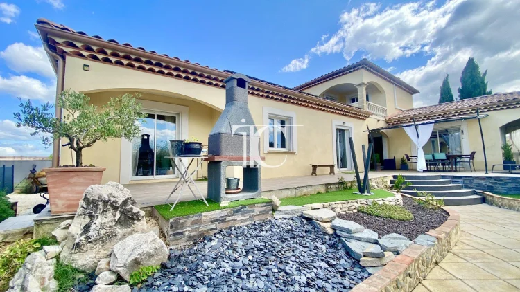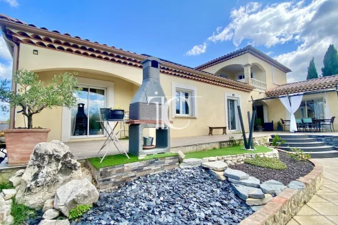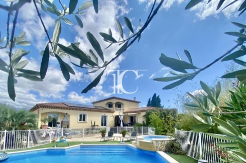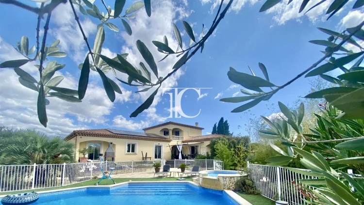 For sale in a quiet hamlet between Ales (15km) and Barjac (15km), a 176m2 villa, built in 2004 and perfectly maintained, on a 2000m2 fenced and flat plot planted with century-old olive trees around a tiled, secure swimming pool.